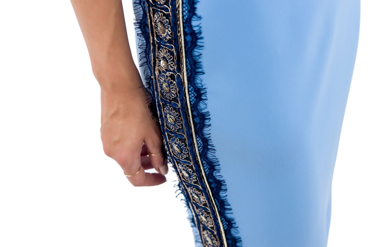 Aplicatii pe laterale lucrate manual bleumarin si auriu