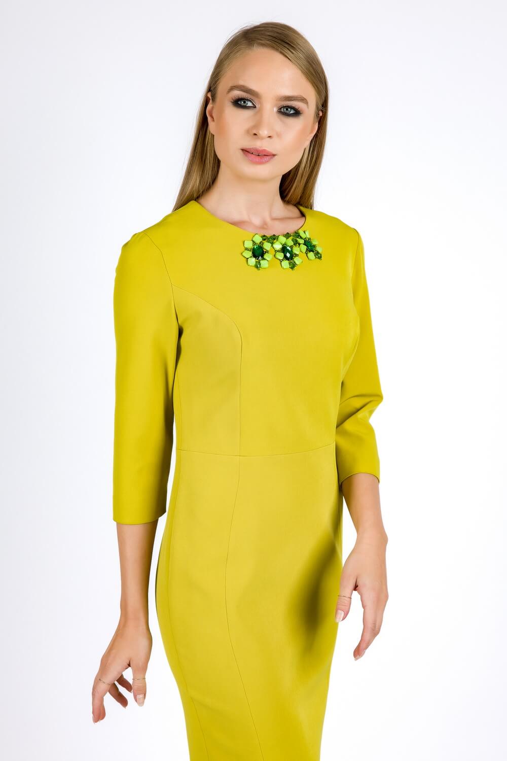Decolteu rotund evidentiat cu accesoriu din perle hexagonale prinse manual