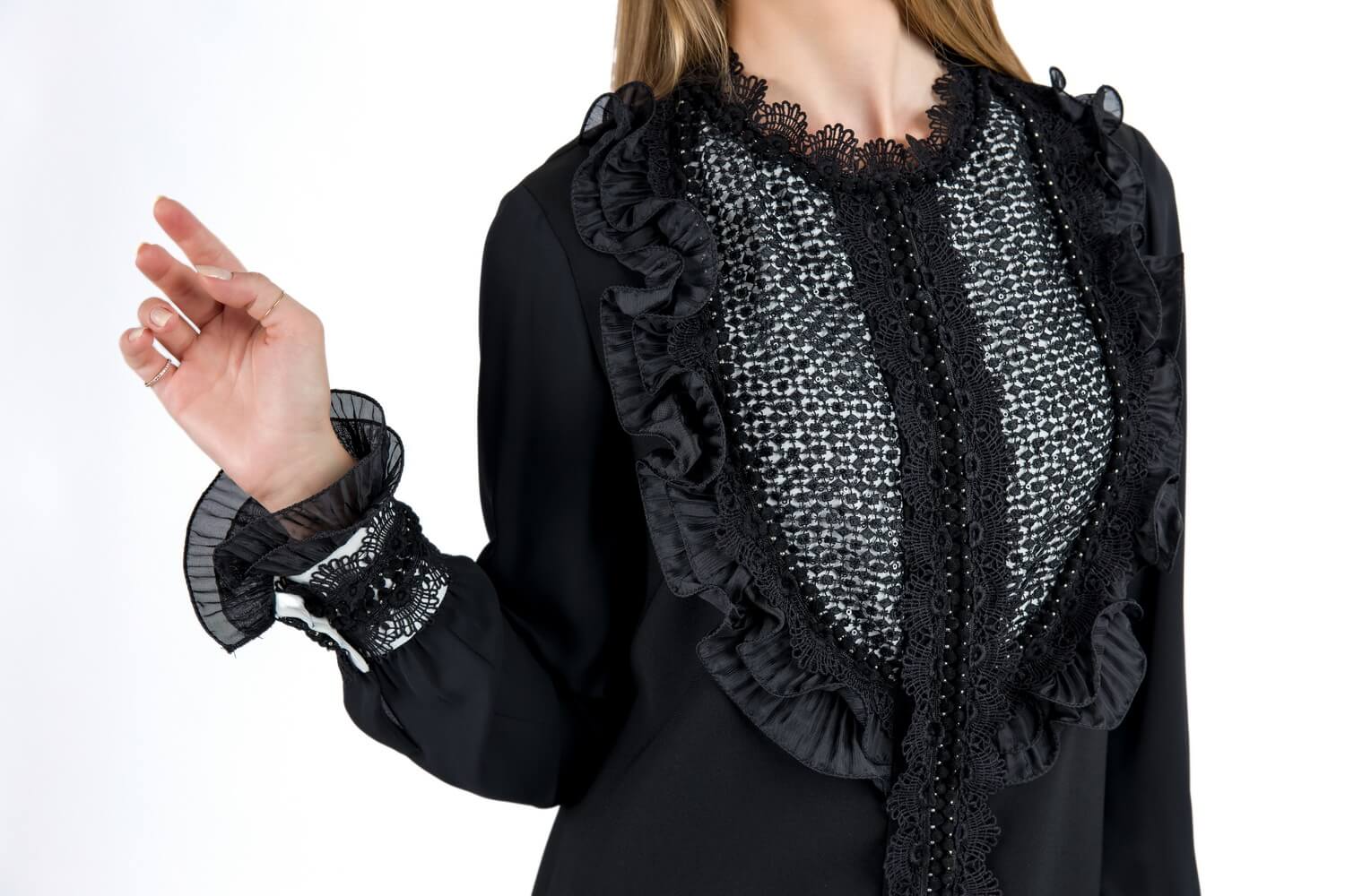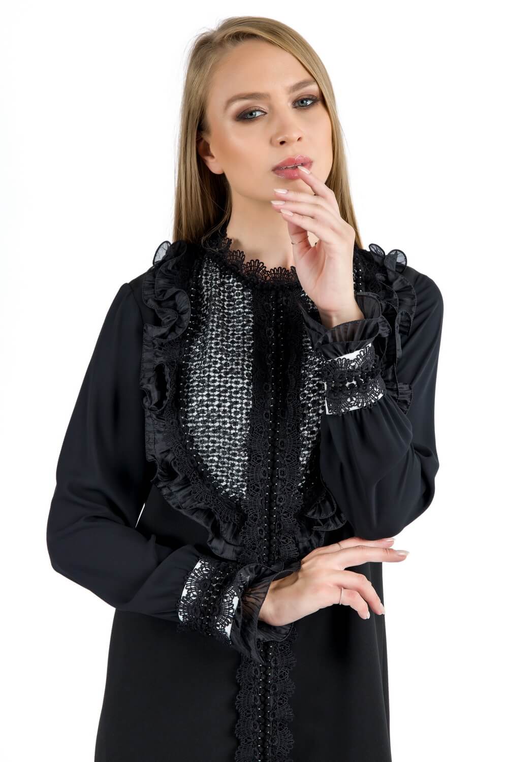 Maneca bufanta cu volanase plisate si manseta cu butoni