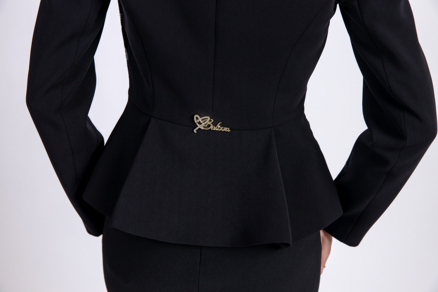 Pe zona bustului avem dantela aplicata peste materialul sacoului